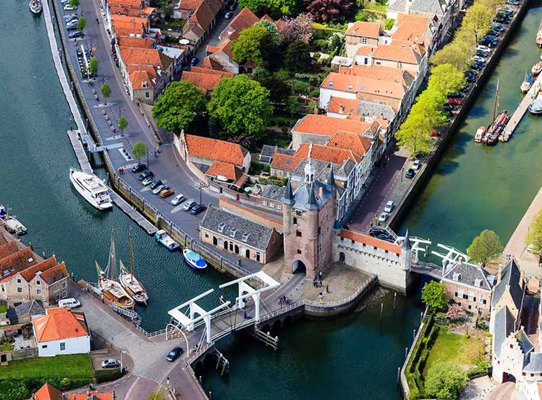Das Meer brachte Schouwen-Duiveland in der Vergangenheit großen Wohlstand. Die 59 Kilometer lange Radroute, die zu historischen Baudenkmälern auf Schouwen-Duiveland führt, zeigt den damaligen Reichtum. Von Weitem sehen Sie schon die Silhouette des Dikke Toren in Zierikzee. Aus Geldmangel endete der Bau dieses eigentlich viel höher geplanten „dicken Turms“ bei 62 Metern. In Zierikzee finden sich über 500 Kulturdenkmäler. Die Route führt Sie auch in das Dorf, aus dem der Dichter Jacobs Cats stammt: Brouwershaven. Sehen Sie sich hier de Denkmal-Route an!